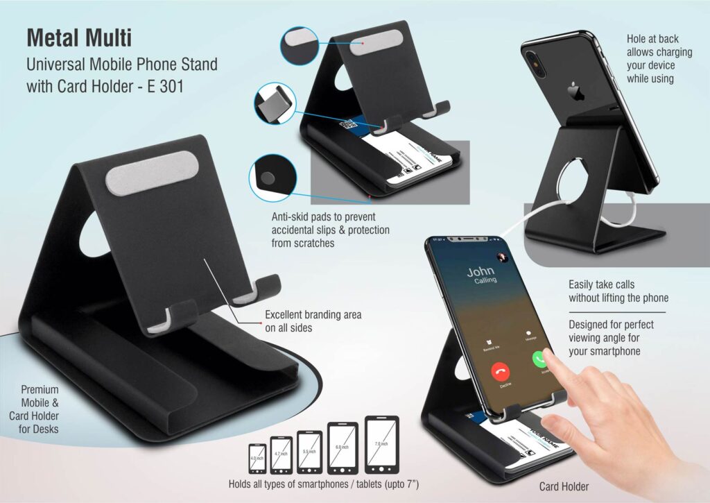 A metal mobile stand is a holder or dock made from metal (steel, aluminium, or alloy) designed to keep your smartphone or small tablet upright and stable on flat surfaces like desks, nightstands, or kitchen counters.